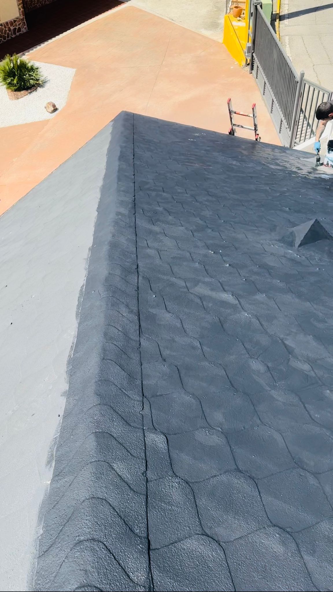 Si tu tejado de pizarra presenta daños podemos ayudarte con ellos. ¿Cómo lo hacemos? Sustituimos las tejas dañadas, revisamos los perfiles de aluminio y sellamos con manta fibrada y caucho poliuretano, asegurando que tu tejado quede totalmente impermeabilizado y protegido.