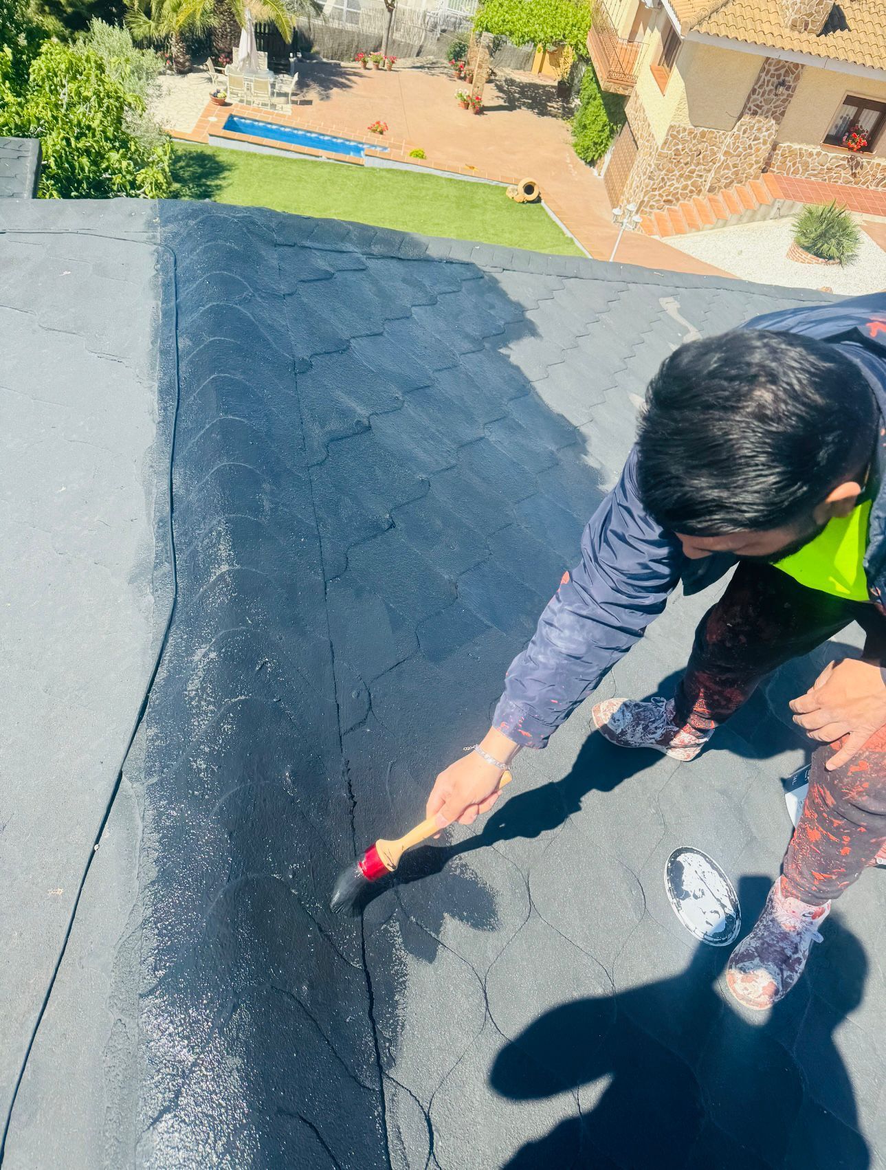 Nuestra técnica de impermeabilización de tejados de pizarra en Madrid combina materiales de alta calidad y una aplicación profesional por parte de nuestro equipo, garantizando que la cubierta resista la lluvia, el viento y las inclemencias del tiempo durante años. Gracias a nuestra experiencia, evitamos filtraciones y goteras, protegiendo tu hogar o negocio con resultados visibles y duraderos y una garantía asegurada por nuestra parte.
